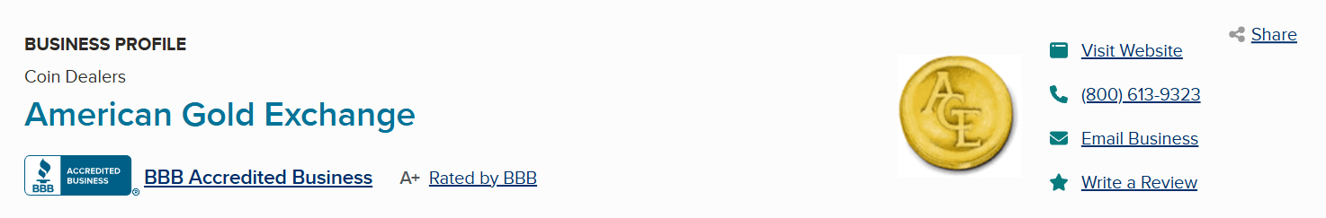 The American Gold Exchange has an A+ rating from the Better Business Bureau. It also gets great reviews on Trustpilot.