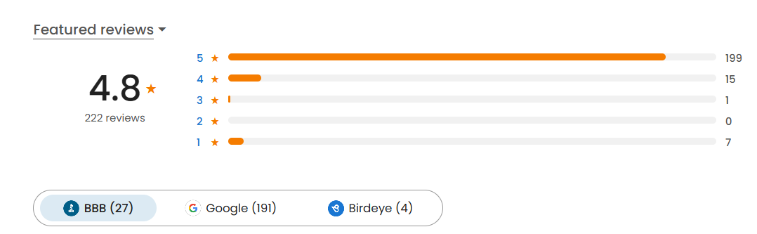 The Better Business Bureau gives a 95% satisfaction rating. 2023 stats show 98% success in fixing complaints.