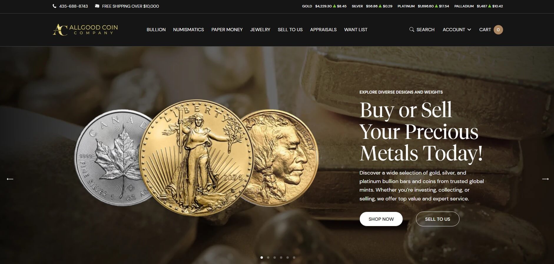 Established in 1992 in St. George, Utah, Allgood Coin Company provides comprehensive numismatic services, encompassing precious metals such as gold, silver, platinum, and palladium, as well as rare historical United States coins, paper money, and historic paper currency.