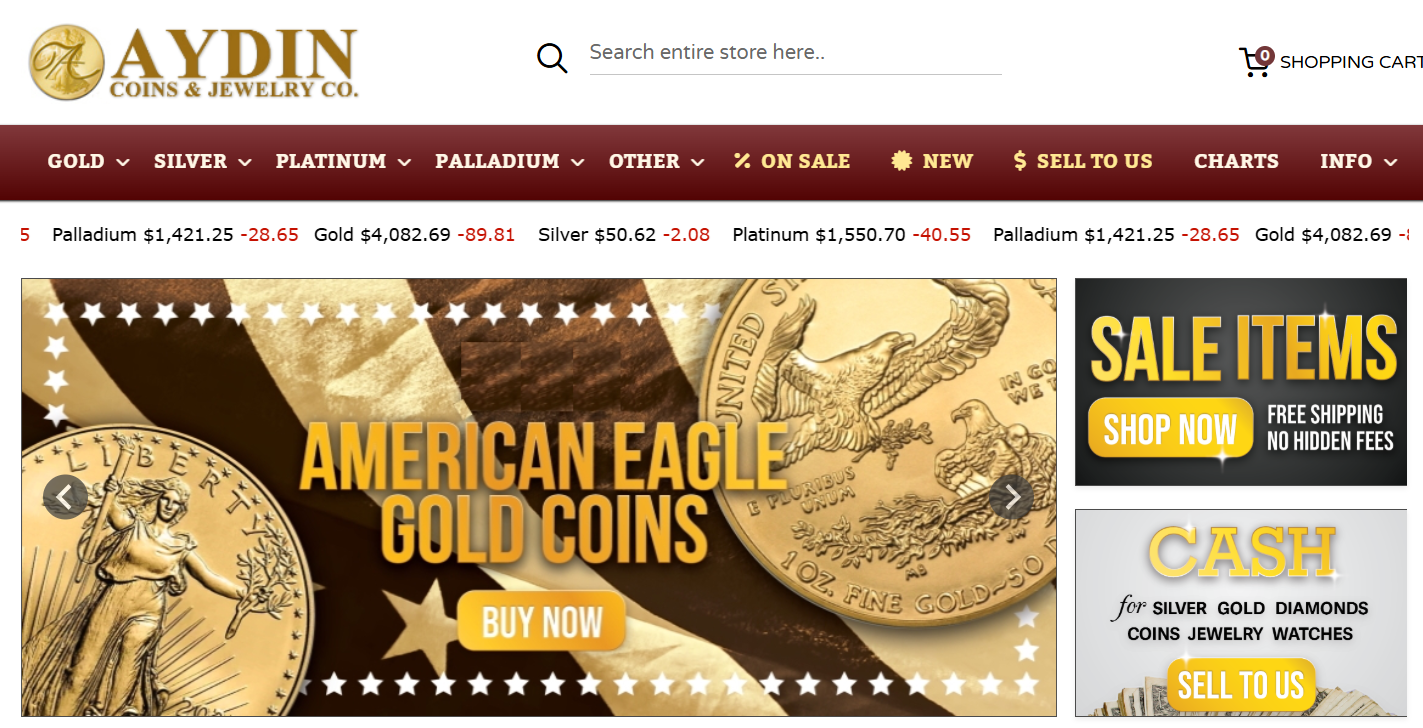 Aydin Coins is a top gold dealer. It works as a full-service dealer online and in retail stores. The focus is on gold, silver, platinum, palladium, and collectible coins like American Eagles and Maple Leafs.