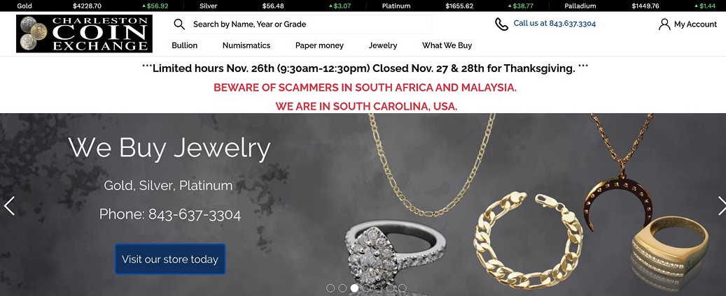 - Top benefits: Free quick appraisals, fair prices for buying and selling gold, silver, rare coins, and jewelry at their safe store in Charleston, SC.