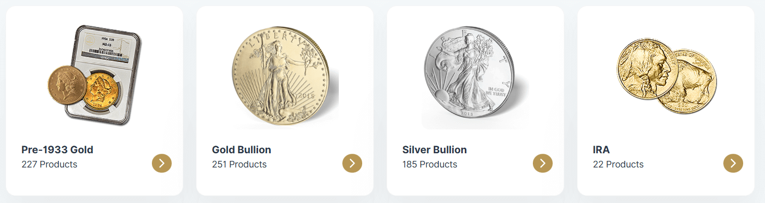 It highlights standout products such as the American Gold Buffalo Coin. James Earle Fraser designed it with an iconic Native American profile. The coin has historical significance, a $50 face value, and a limited mintage rate (the number of coins produced each year).