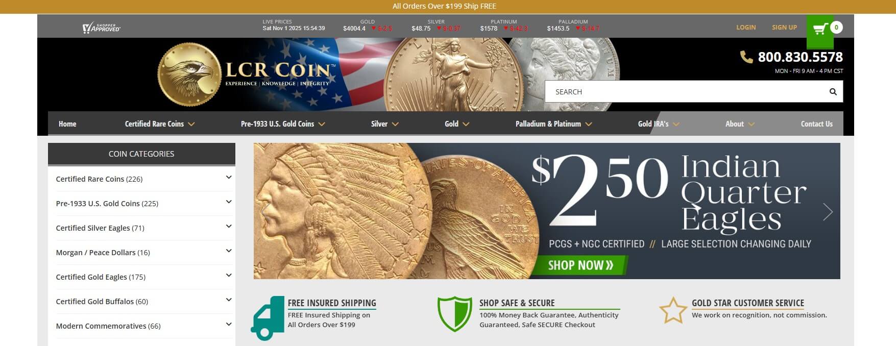 LCR Coin sends your items safely with insured shipping via FedEx or USPS. Their money-back guarantee handles returns and questions about authenticity, so you can buy without concern.