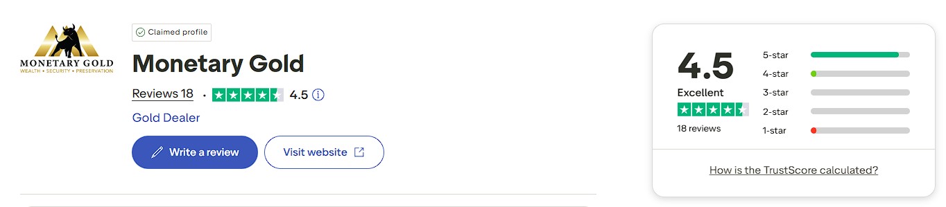 Monetary Gold maintains an A+ rating from the Better Business Bureau, along with consistently positive reviews on platforms such as Trustpilot and Google.