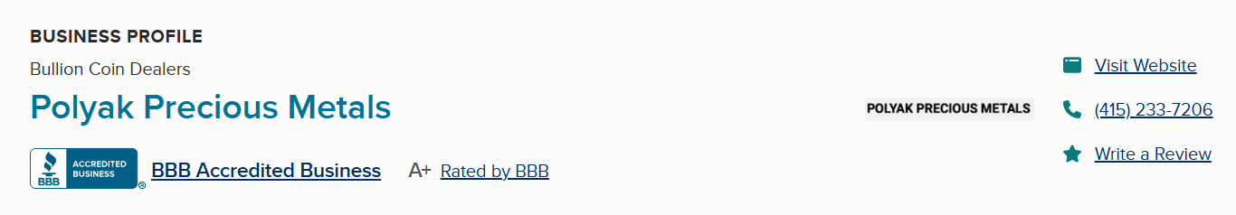 Polyak Precious Metals earns legitimacy from its A+ BBB rating and verified eBay seller status. It has operated in the San Francisco Bay Area for decades, building customer relationships with integrity and expert advice.