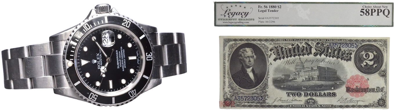 Additional Items: Currency, Watches, and Diamonds
