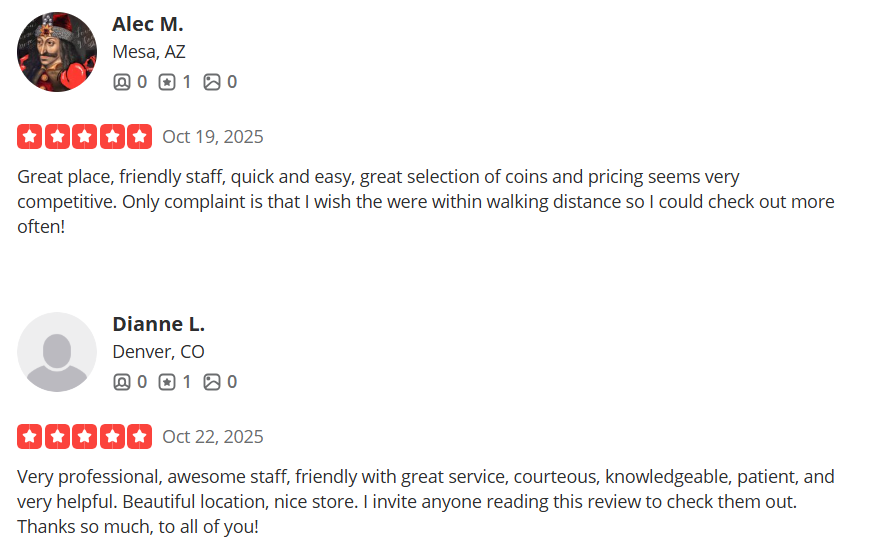 They also use expert appraisals for the collectible worth, called numismatic value, of rare coins. This helps you reliably sell assets like silver rounds and jewelry.