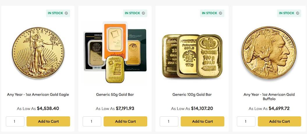 The Bullion Bank focuses on top investment-grade bullion. Get gold, silver, platinum, and palladium to diversify your investments. Popular choices include American Eagles, Canadian Maple Leaf coins, and South African Krugerrands in coins or bars.