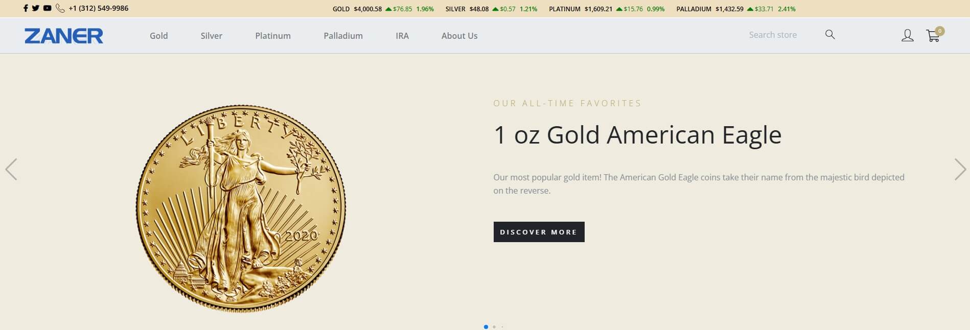 | Metal | Spot Price (USD/oz) | Zaner Premium (%) | Competitor Avg (%) |