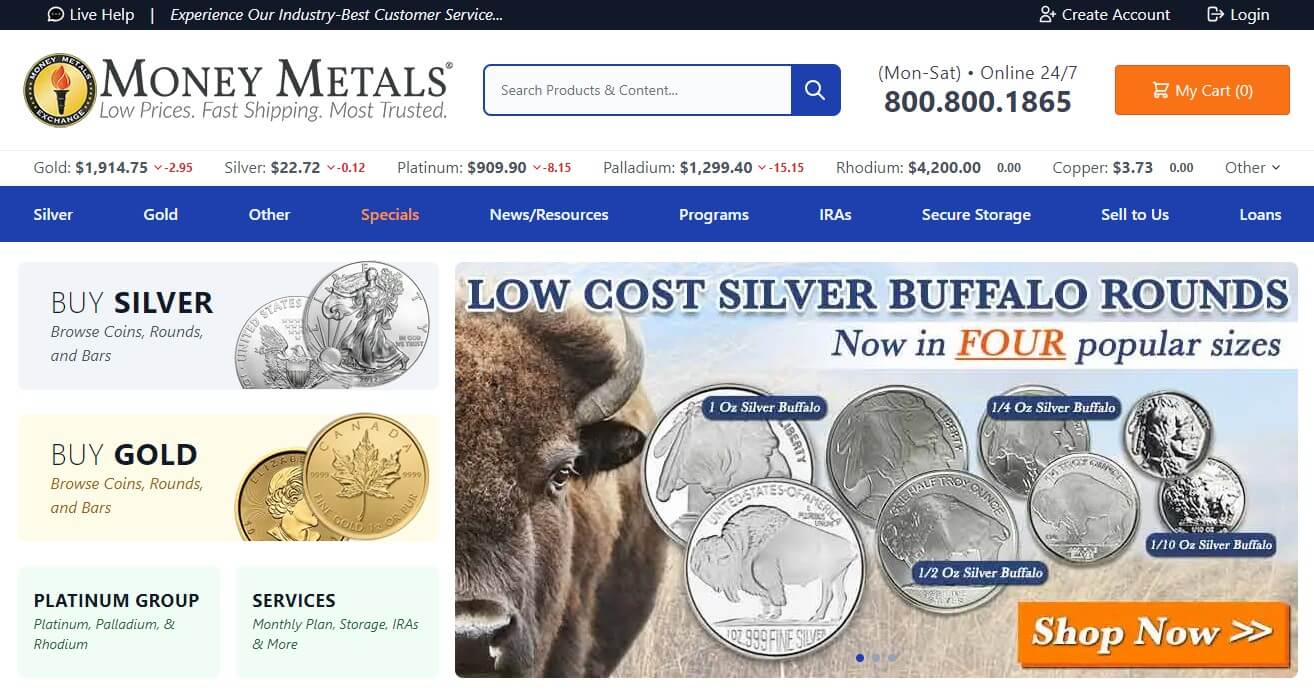 Recognized by Investopedia as the "Best Overall" online precious metals dealer, Money Metals Exchange stands out for its integrity, competitive pricing, and a wide array of services. Their approach is beginner-friendly, emphasizing customer education and top-tier service regardless of order size.